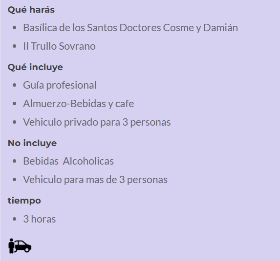 - Vehiculo privado para 3 personas